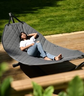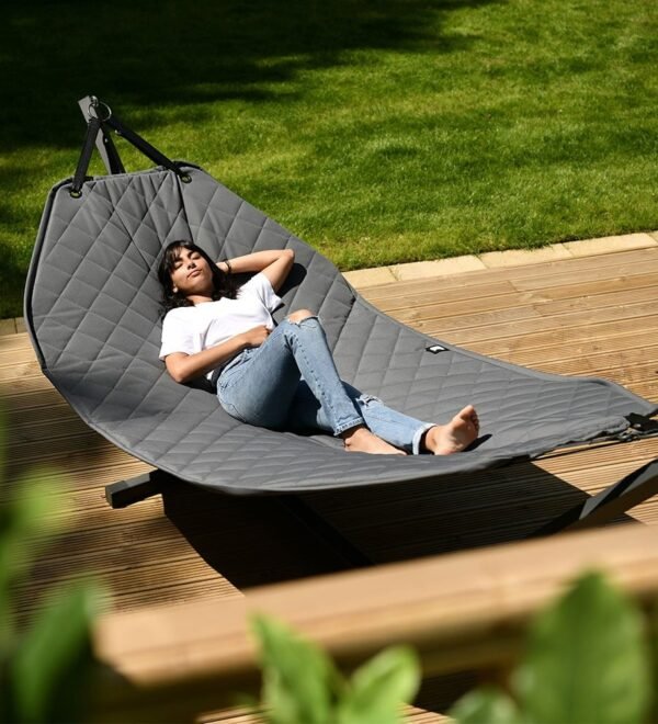 احصل على أقصى درجات الراحة في حديقتك مع مرجيحة هاموك المبطنة والمقاومة للماء باللون الرمادي. تتميز بسهولة التركيب والفك، حيث يمكن فك الأرجوحة وإنزالها من إطارها المتين في ثوانٍ وتخزينها بسهولة. كما أن قماش المرجيحة مقاوم للبهتان الناتج عن أشعة الشمس، مما يمنحها عمرًا أطول.