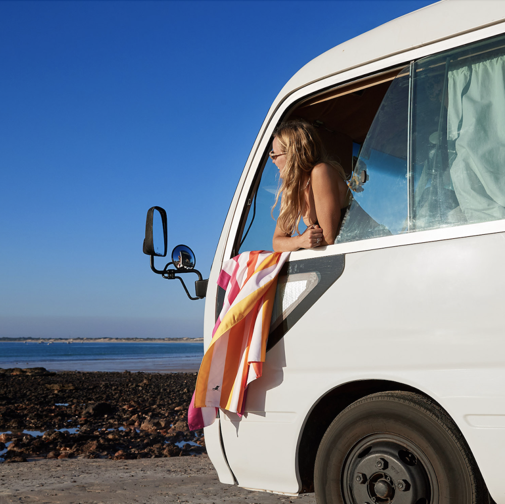 منشفة بحر سريعة الجفاف - بيتش سن رايز - مقاس كبير تأتي بتصميم جذاب يجمع بين الألوان الزاهية والنقوش المستوحاة من شروق الشمس على الشاطئ، تتميز منشفة حمام السباحة بخفة الوزن مما يسهل حملها ونقلها أثناء السفر، منشفة سريعة الجفاف مصممة لمنع التصاق الرمال بها، مما يجعلها الخيار المثالي لاستخدامها على الشاطئ، تُعتبر منشفة سريعة الجفاف الخيار الأمثل لتلبية احتياجاتك في الشاطئ أو المسبح، حيث تجمع بين الوظيفة والأناقة، مما يجعلها افضل منشفة استحمام. تضفي فوطة بحر لمسة من الحيوية والمرح على يومك في الشمس، مما يجعلها رفيقًا مثاليًا لجلسات الاسترخاء على الشاطئ أو في حوض السباحة.