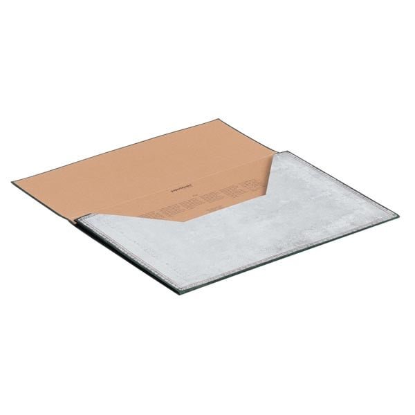 Capturing the flavour of Renaissance-style bound books, our Flint cover pays homage to the craft of delicate gold tooling. For this Old Leather design, we have incorporated a textured white design reminiscent of chalk, flint or limestone, adding an edginess to the look of finely wrought leather.