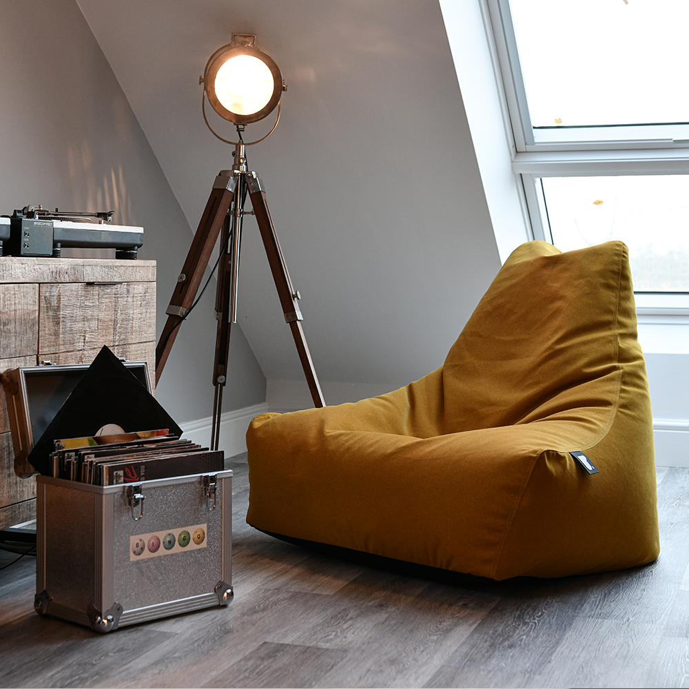يأخذك كرسي البين باج المخمل بلونه الاصفر الخردل الفريد الى مستوى جديد من التمييز والفخامة. مصممة من جلد المخمل الشمواه فائقة النعومة. قد تكتشف مستوى جديد من مزيج الراحة والدفء لم تكتشفه قبل الاسترخاء على هذه الجلسة الفريدة. يتميز بخامة عالية المرونة والمتانة بنفس الوقت، بالاضافة الى الخياطة المزدوجة وحشوة حبيبات البوليستر،. كلها عوامل تجعله مقعد غاية في الراحة والتحمل في نفس الوقت. متوفر بخمس الوان فريدة وكلاسيكية مختلفة.